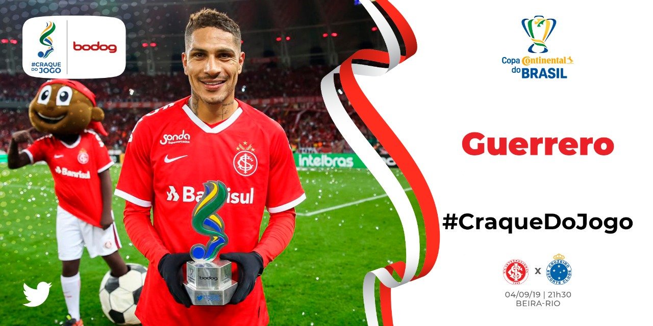 Paolo Guerrero marcó un doblete en la goleada de Internacional por 3-0 sobre Cruzeiro y su equipo clasificó a la final de la Copa de Brasil. Por su gran actuación fue elegido el mejor jugador del partido.