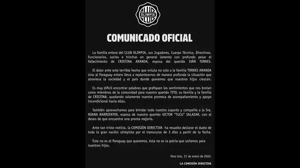 También recibió un impacto de bala en la pierna pero se encuentra estable Xoana Barrientos, esposa del jugador argentino oriundo de Tucumán, Víctor Salazar, de 28 años, defensa de Olimpia.