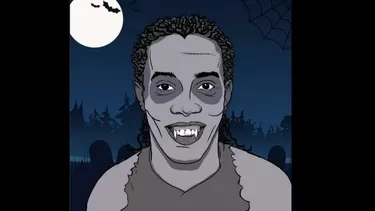 "Buen viernes 13 para todos", es el mensaje de 'Dinho' acompañando la imagen donde se le aprecia caricaturizado para una película de terror.