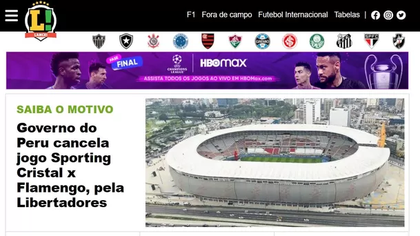 "Gobierno de Perú cancela el juego entre Sporting Cristal vs. Flamengo por la Libertadores, tituló Lance.