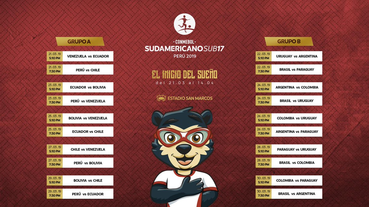 El Sudamericano Sub-17 inicia este jueves en el Estadio de San Marcos con dos partidos: Venezuela vs. Ecuador (5:10 p.m.) y Perú vs. Chile (7:30 p.m.), ambos por el Grupo A.