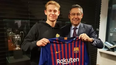 De Jong, de 21 años, se incorporará a las filas del Barcelona el próximo 1 de julio después de que el club catalán lo fichase por 75 millones de euros más 11 en variables.