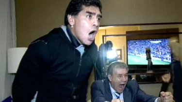 En el programa De Zurda, que el 'Pelusa' conduce junto al periodista Víctor Hugo Morales, en la cadena Telesur, pasaron el momento en que el astro del fútbol mundial celebró los goles de Luis Suárez antes los ingleses.