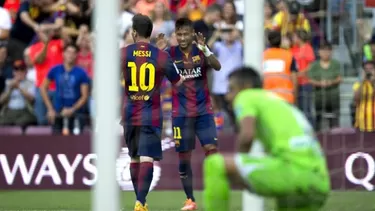 La sociedad Messi-Neymar, tan productiva esta Liga, se puso otra vez a servicio de su equipo para hacer subir el quinto gol, en una nueva asistencia del argentino que el brasileño transformó en gol, al engañar en un disparo raso a Roberto (5-0).