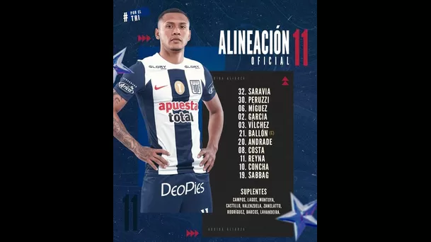 A continuación te dejamos la alineación confirmada de Alianza Lima para el compromiso ante UTC en el Héroes de San Ramón.