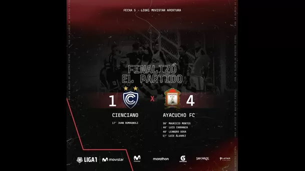 Ayacucho FC sumó su cuarta victoria en el Torneo Apertura. El único partido que perdieron en el certamen fue ante la Universidad San Martín, en la primera jornada del certamen.