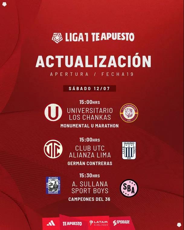 Para evitar suspicacias, la Liga de Fútbol Profesional anunció este lunes que los partidos van el sábado 12 de julio a las 3:00 p.m. (hora peruana).