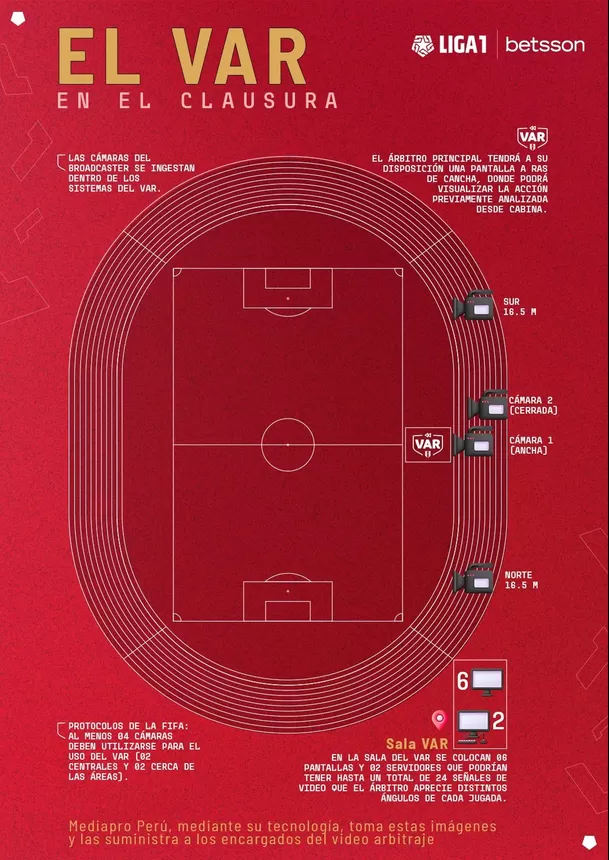"En un hecho histórico para el fútbol peruano, se implementará la tecnología de videoarbitraje (VAR) a partir de este jueves 22 de junio que inicia el Torneo Clausura de la Liga 1 Betsson 2023", señala la Federación Peruana de Fútbol (FPF) en un comunicado.