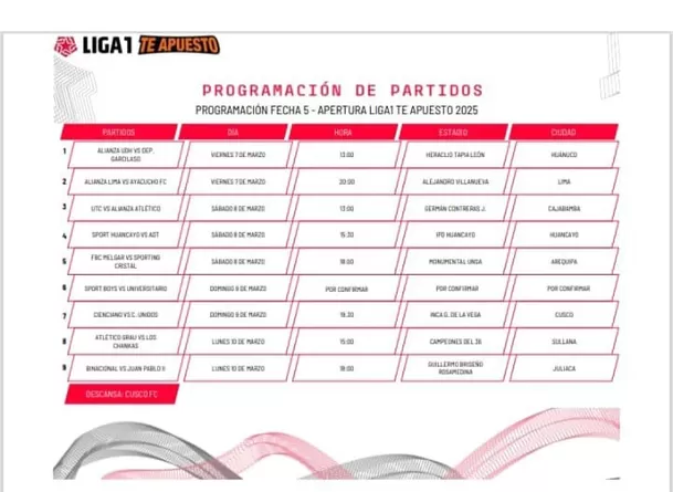 Y es que en un principio, el duelo entre Alianza Lima y Ayacucho se jugaría el sábado 8 de marzo en Matute, dejando poco tiempo entre ese partido y el duelo de vuelta de Libertadores.