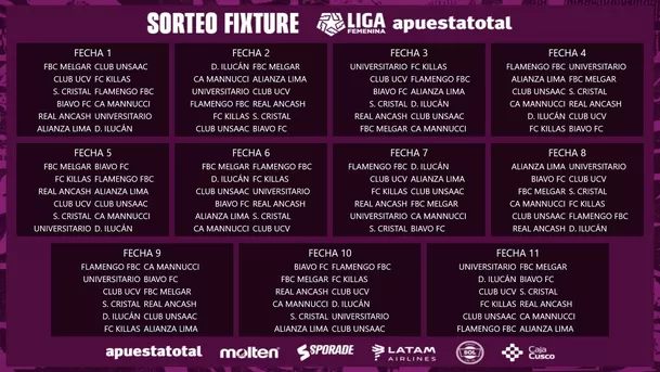 El actual campeón, Alianza Lima, debutará en casa enfrentando a Defensores de Ilucán, mientras que Universitario de Deportes visitará a Real Áncash, uno de los recién ascendidos. Por su parte, Sporting Cristal recibirá a Flamengo FBC, el otro equipo debutante en la primera división del fútbol femenino peruano.