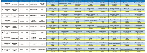 Por su parte, el líder del torneo, Los Chankas, tendrá actividad en condición de local frente a Atlético Grau. Para este encuentro, Pablo López fue elegido como árbitro principal, acompañado por Alexander Blas en el VAR.