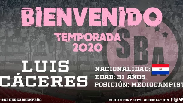 "Damos la bienvenida a Luis Cáceres, mediocampista que viene a defender la rosada este 2020. A dejarlo todo por nuestros colores Luis", dice el mensaje compartido por la institución chalaca en redes sociales.