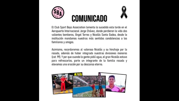 Sport Boys lamentó el fallecimiento de bomberos y recordó que uno fue menores de la Misilera