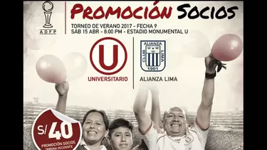 "Teniendo como marco una versión más del clásico que Universitario disputará ante Alianza Lima, se han puesto precios preferenciales pensando en nuestro leales socios el cual consistirá en la adquisición de boletos para la tribuna occidente a un precio de S/ 40 soles, como reconocimiento a su constancia y amor por la camiseta", anunció el club crema en un comunicado.