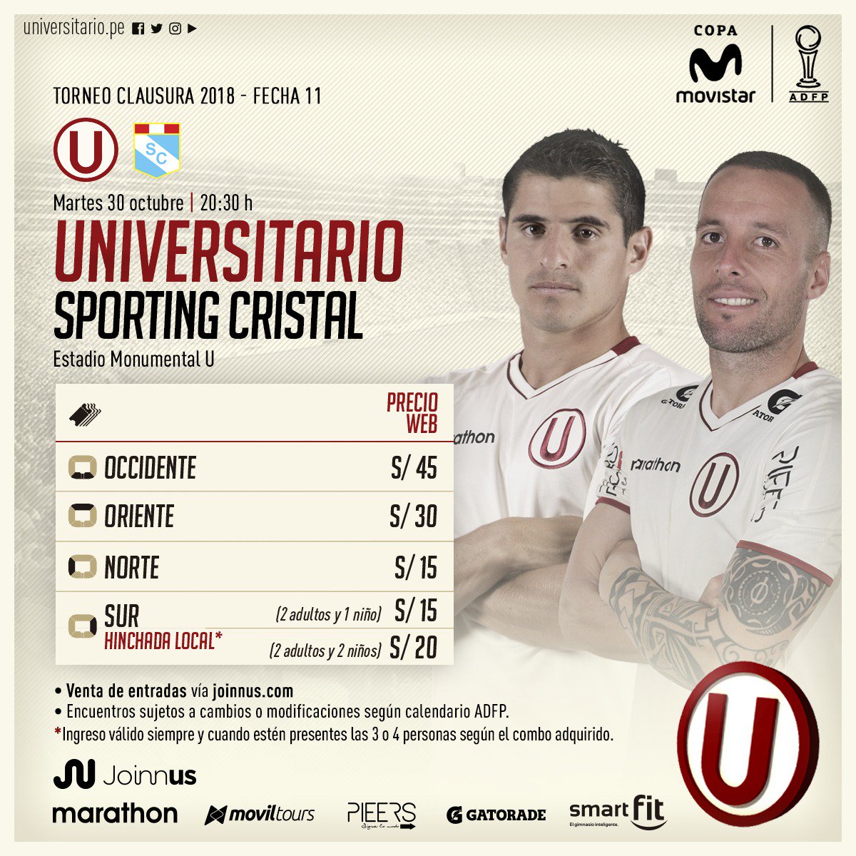 El club Universitario de Deportes informó que hasta la fecha hay 28 mil entradas vendidas para el duelo de este martes ante Sporting Cristal, en el estadio Monumental, por la fecha 11 del Torneo Clausura. Cabe recordar que solo ingresará la hincha local.
