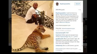 “Le quiero agradecer a mi familia del equipo The Money Team Rusia por su hospitalidad en Moscú y su regalo anticipado de navidad: un raro y exótico tigre de India. ¿Alguna sugerencia para el nombre de esta hembra de dos meses?", escribió Floyd Mayweather en su cuenta de Instagram.