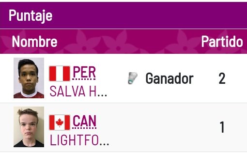 En el día de competencia número diez, Jesús Salva venció a su rival canadiense Wyatt Lightfoot por 2-1 (21-14; 14-21; 21-9).
