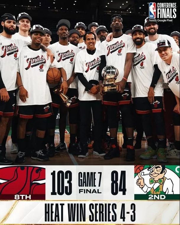 Los pupilos de Erik Spoelstra jugarán sus primeras Finales desde su derrota de 2020 ante los Lakers y lo harán como la segunda franquicia en la historia en llegar a esta instancia siendo el octavo sembrado.