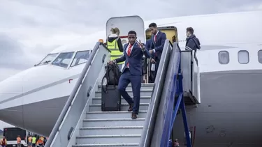Con una amplia sonrisa cada uno de los jugadores descendieron del avión con la ilusión que hacer una gran Copa del Mundo.