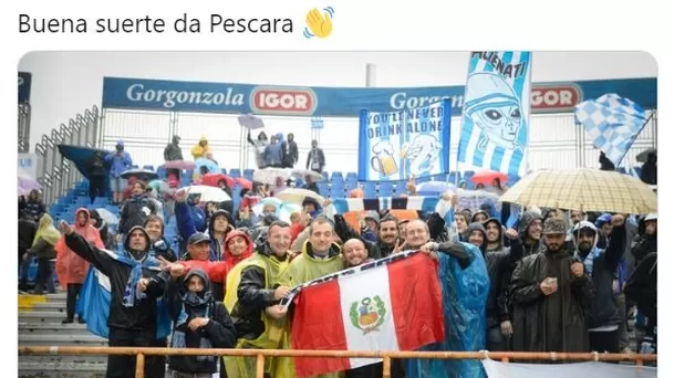"Buena suerte del Pescara", dice el mensaje compartido a través de Twitter por parte de la institución de la región de los Abruzos, que se encuentra nuevamente disputando la segunda división del fútbol italiano.