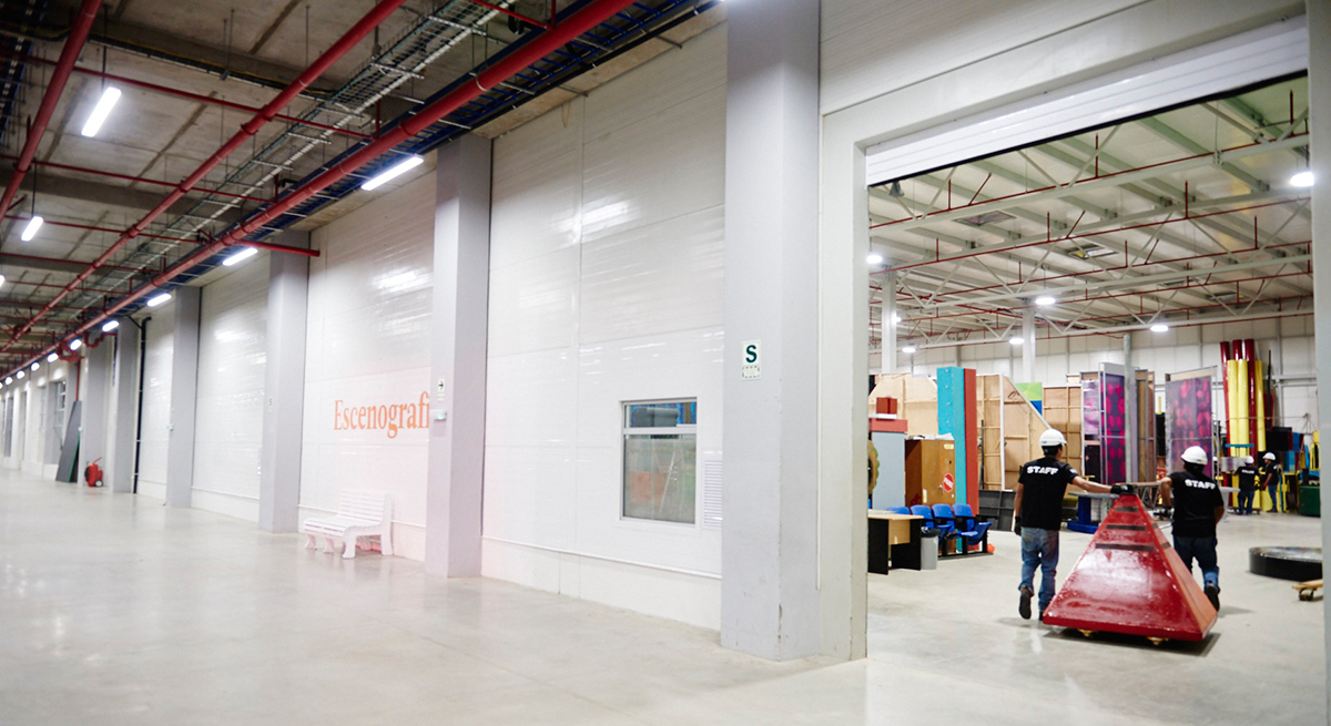 1000 m2 Utileria y vestuario, 2000 m2 Almacén y Escenografia.