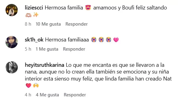 La reina de belleza muy emocionada describió el clip como: "Las mejores vacaciones, realmente", pero lo que más llamó la atención fue la presencia de la nana de los niños, hecho que fue aplaudido por los seguidores de Nats en los comentarios de la publicación que se logra ver en Instagram.
