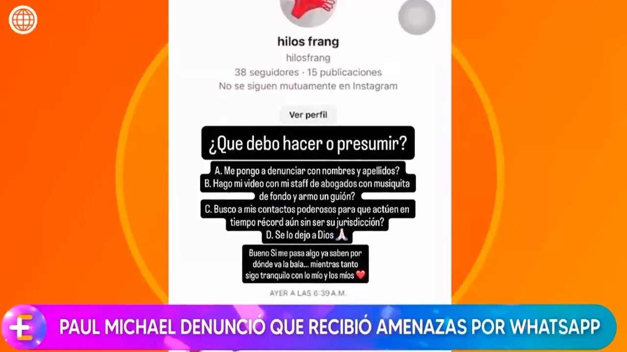 Paul Michael decidió hacer pública las amenazas que recibió a través de WhatsApp y no dudó en compatir los chats en sus redes sociales. La pareja de Pamela López asguró que las inquietantes advertencias que llegaron a su teléfono provienen desde Ecuador y compartió una conversación de una cuenta desconocida de Instagram.