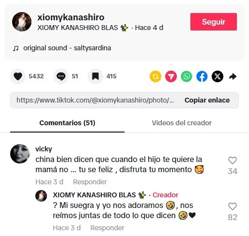 Xiomy Kanashiro decidió aclarar a través de sus redes sociales cómo es su actual relación con doña Charo Guadalupe, mamá de Jefferson Farfán. "Bien dicen que cuando el hijo te quiere la mamá no... tú se feliz, disfruta tu momento", le comentó una usuaria y ella no dudó en responder: "Mi suegra y yo nos adoramos. Nos reímos juntas de todo lo que dicen".