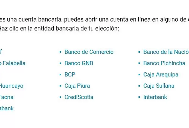 1. Banco de la Nación, Banbif, BBVA, BCP, Caja Huancayo, Interbank, Banco Pichincha y Scotiabank: con tu número de cuenta.