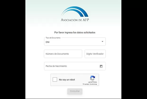Lo primero que debes hacer es ingresar al sitio web www.consultaretiroafp.pe y completa la información que solicita. El portal está habilitado desde el lunes 18 de mayo, en un horario de 08:00 a. m. hasta las 08:00 p. m. y de lunes a viernes, según informó la Asociación de AFP.
