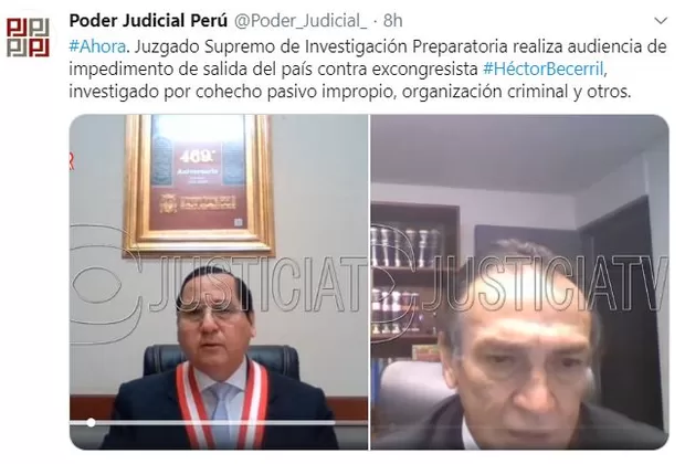 El excongresista Héctor Becerril participó hoy de la audiencia sobre el pedido de la Fiscalía de 36 meses de impedimento de salida del país en su contra. Según dijo, de ser aprobado el requerimiento, no apelará a la decisión.