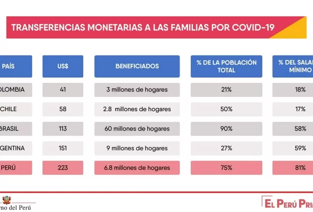 Vizcarra indicó, además, que los bonos administrados por el Midis y el MTPE han beneficiado con S/ 380 a 2.7 millones de familias. A su vez, dijo que se completará el subsidio para alcanzar el total de S/ 760.