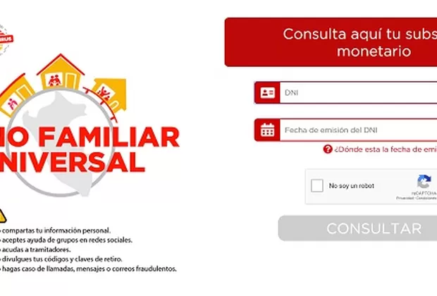 Reniec reactivó la plataforma web https://bonouniversalfamiliar.pe/#!/ para que los ciudadanos consulten si son beneficiarios del segundo tramo del Bono familiar universal de S/760.