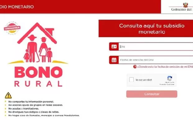 El Ministerio de Desarrollo e Inclusión Social (Midis) anunció que la página web oficial donde se consultará si los ciudadanos son beneficiarios del Bono Rural que entregará el gobierno ya está habilitada.