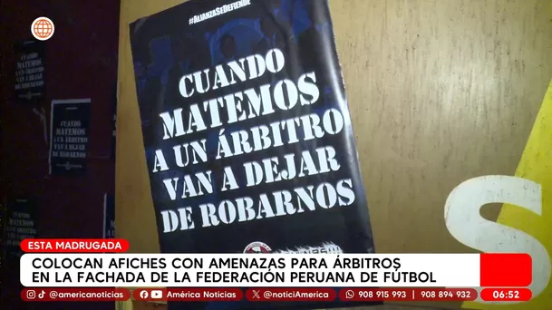 La sede de la Federación Peruana de Fútbol (FPF), ubicada en la cuadra 20 de la avenida Aviación, amaneció este domingo con afiches que contenían amenazas de muerte dirigidas a los árbitros de la Liga 1.
