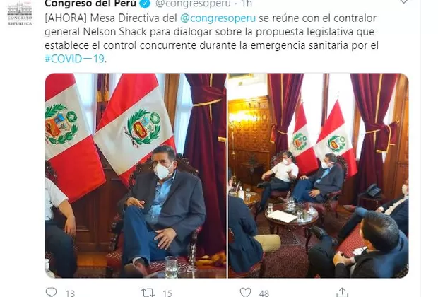 Ante la propuesta del Ejecutivo para que la Contraloría ejerza control concurrente durante la emergencia sanitaria por COVID-19, la Mesa Directiva del Congreso de la República se reunió este sábado con el contralor Nelson Shack.