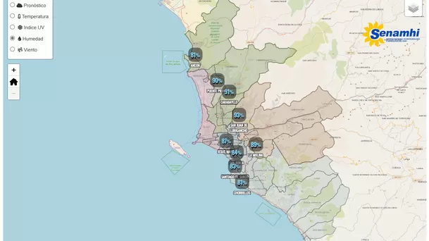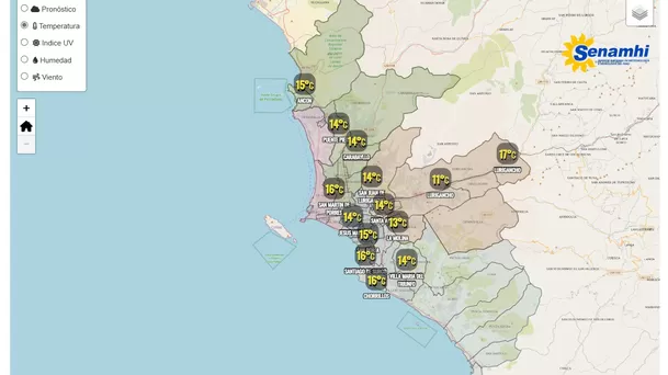 En Lima Norte y Sur, las temperaturas varían un máximo de 16 y un mínimo de 13 grados. No obstante, el registro cambia en la tarde, influenciado por la cercanía al mar hacia el oeste y la altitud hacia el este.