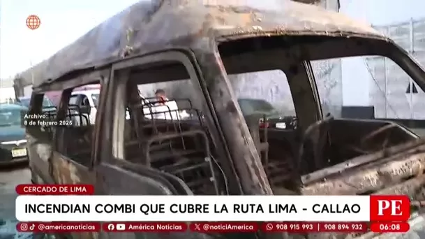 Una combi de transporte público fue incendiada por presuntos extorsionadores en la cuadra 32 de la avenida Enrique Meiggs, en el Cercado de Lima. El vehículo pertenecía a una asociación de transportistas informales que cubre la ruta entre Lima y el Callao.