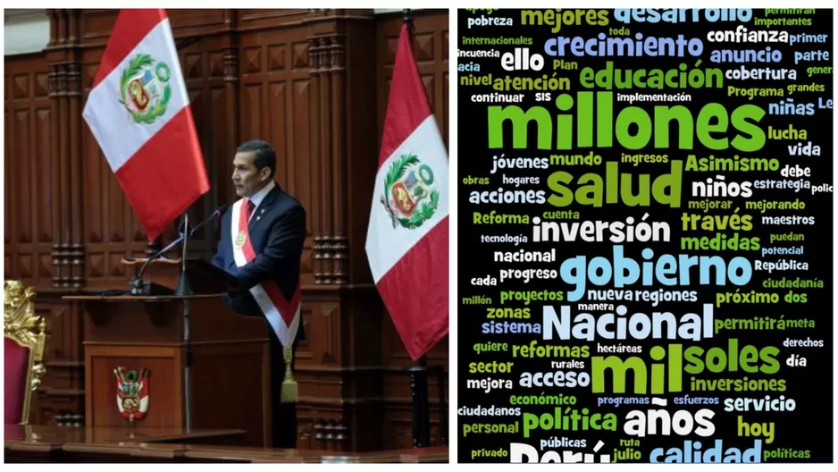 Las palabras más grandes son las que repitió más veces. Millones, salud, Gobierno y país son las palabras más repetidas en su discurso.