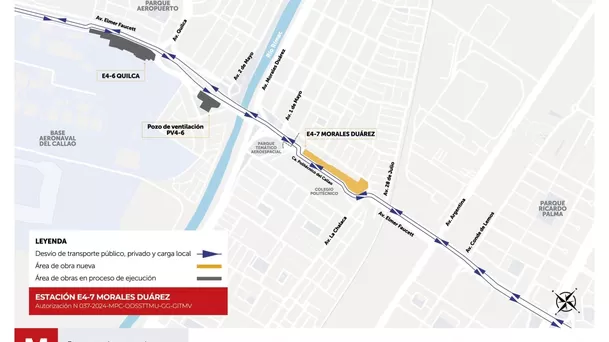 Este domingo arrancó el plan de desvío vehicular en el Callao por las obras de la estación Morales Duárez, parte del ramal de la Línea 4 del Metro de Lima y Callao