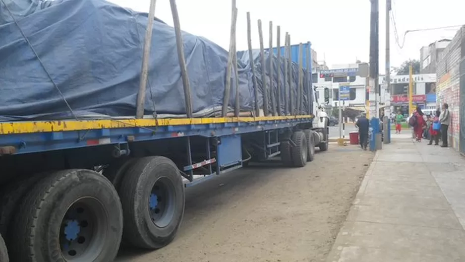 Total desconsideración. El conductor de un camión estacionó su enorme vehículo en el lugar donde se encuentra un paradero de los buses alimentadores del Metropolitano en Los Olivos.