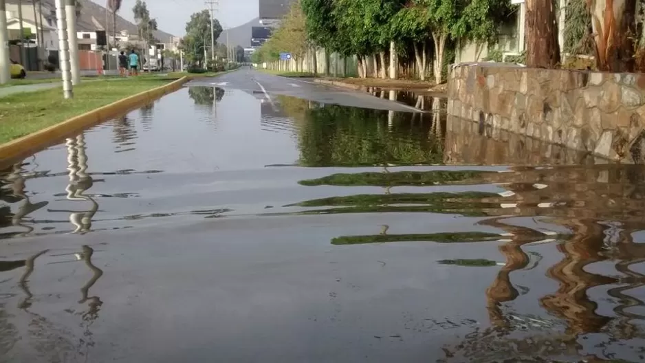Un aniego se registró en la avenida Flora Tristán, a la altura del cruce con la avenida La Fontana, en el distrito de La Molina.
