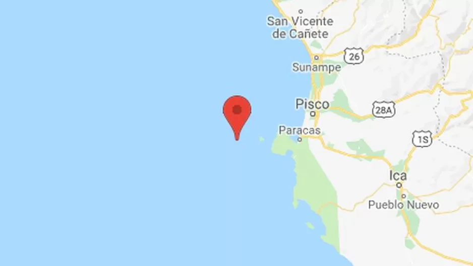 El movimiento telúrico se registró a 44 kilómetros al Oeste de Piso en Ica
