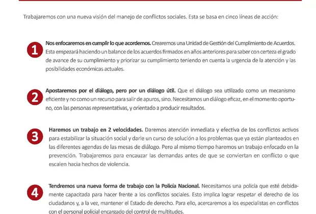 “Cuando empecé a trabajar en el Consejo de Ministros, se reportaban 111 controversias, de las cuales 43 se podrían definir como conflictos sociales. Y se ha venido trabajando desde la fecha para buscar la solución. También hemos encontrado que muchos de los acuerdos que se habían dado en el gobierno anterior no habían tenido la prioridad dentro de cada sector para llevarse a cabo”, indicó.