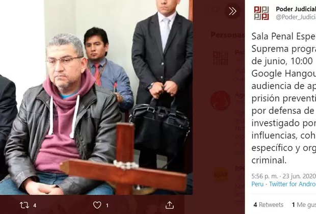 Su abogado planteó la variación de la medida en su contra alegando que su estado de salud lo torna vulnerable a contraer el COVID-19, sin embargo, la Sala a cargo del juez Hugo Núñez Julca desestimó el pedido.