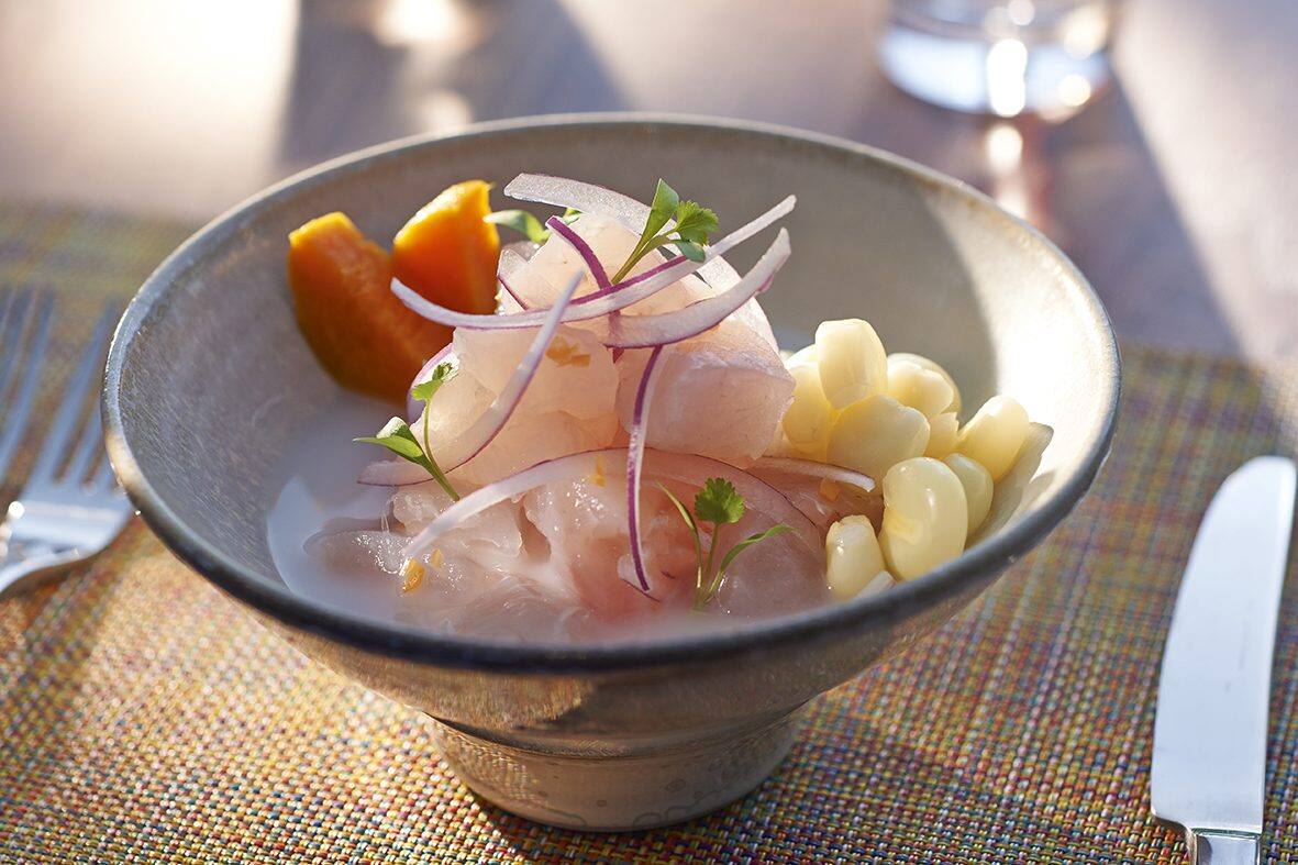 En local cuenta con dos barras: una de ceviche y la otra de anticuchos. En esta última, los comensales pueden ver la preparación de dichos alimentos. La comida es complementada con bebidas peruanas como el Maracuyá sour.