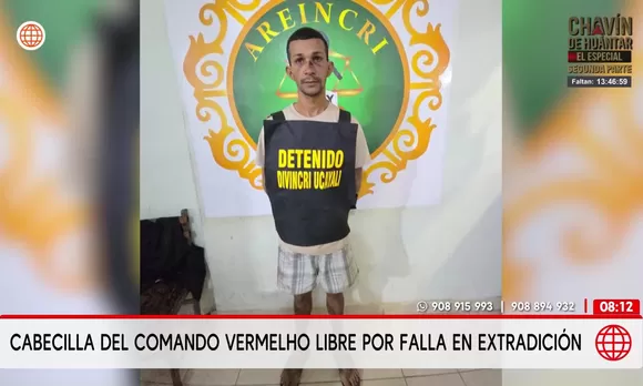 El cabecilla de la organización criminal Comando Vermelho, de Brasil, capturado en julio de este año en nuestro país, fue puesto en libertad luego de vencerse el plazo para el trámite de extradición. Según el Poder Judicial, las autoridades brasileñas no tramitaron la solicitud dentro del plazo correspondiente y hoy se encuentra libre, con impedimento de salida por cinco meses.