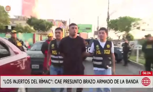 La Policía Nacional del Perú capturó a Alexander Mariño Silva Chan, quien es señalado como el presunto brazo armado de la organización criminal "Los Injertos del Rímac". La intervención se realizó mientras el sujeto circulaba en un taxi por aplicativo a solo una cuadra de la comisaría y la municipalidad de Independencia. Según informó la institución policial, el detenido ocultaba una granada de guerra dentro del vehículo que conducía al momento de ser interceptado.