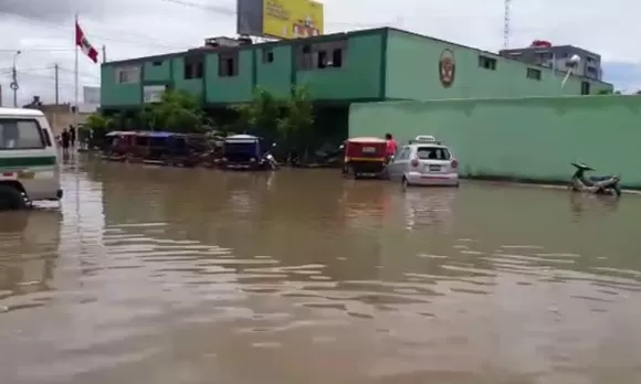 Lluvias intensas en la ciudad de Chiclayo, región Lambayeque, aislaron la comisaría del Norte que se encuentra cubierta con al menos un metro de agua.