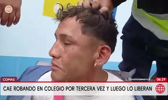 Delincuente roba en colegio de Comas y lo liberan horas después